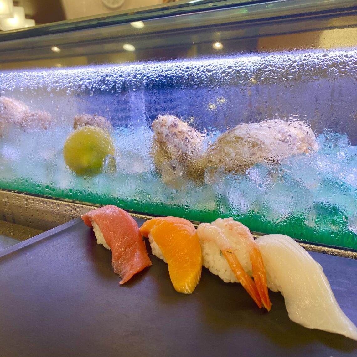 カウンターではお魚を握ってくれるところを生で見ることができ、お皿に直接置いてくださいます。